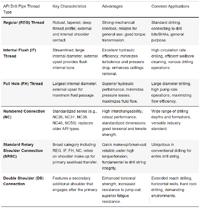 Below are the main API drill pipe thread types:Standard (Conventional) Threads