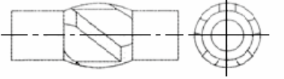 The geometric shape of the key-seat wiper is similar to that of a spiral stabilizer. Its overall dimension is smaller than that of a stabilizer but larger than that of a drill collar. Different from the spiral stabilizer, both the upper and lower inclined shoulders of the key-seat wiper are surfacing-welded with hard alloy electrodes into a conical shape, which has the functions of cutting, reaming, and wiping key seats.